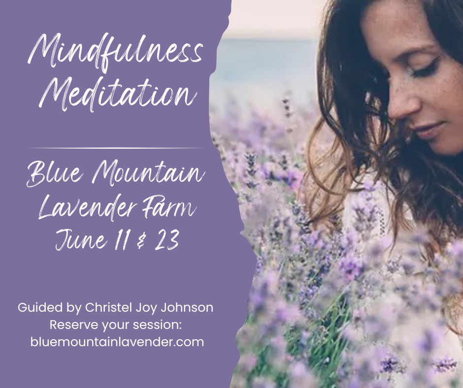 We will also have Mindfulness Meditation out at Blue Mountain Lavender Farm. In these sessions we will practice slowing down racing thoughts, letting go of negativity, and calming both our minds and bodies. This is a simple concept that is difficult for many of us. So come practice where we have beautiful views, amazing scents, and many other ways to focus on the Now through the noticing our sensory experience. For more info and to purchase your spot go to: https://www.bluemountainlavender.com/reservations